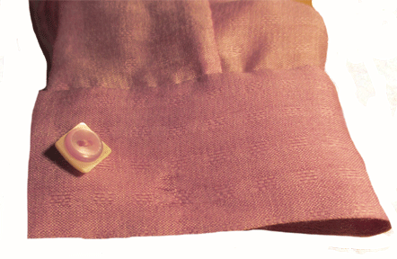 I’m making a silk chiffon blouse. Testing proved that neither a bound buttonhole nor a machine buttonhole would work with the silk chiffon blouse fabric. (Note: the above picture shows the true color of the fabric. )