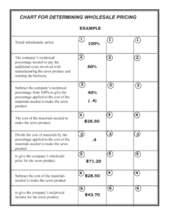 Below are two charts that show how to determine the cost of producing a garment, and a third chart that show how to determining the wholesale price of the garment.